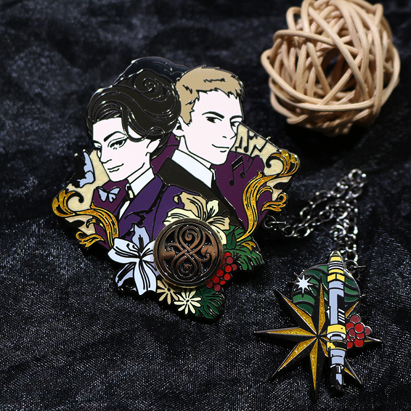 The badge is made using enamel, with a color scheme primarily of purple and gold, complemented by floral and decorative patterns, creating a luxurious and vintage style. The included chain pendant is the Master’s “Laser Screwdriver”.
